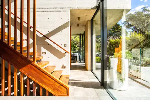 From its elevated position on the corner of Yanko Avenue, this Fox Johnston Architects designed masterpiece balances an ambient north aspect and lush open views with a robust form designed to forge a lasting connection with nature and the outdoors. Essentially a liveable work of art, the home's sculptural facade is wrapped in deep terraces and crowned with a rooftop garden with succulent gardens created by Garden Life. Tasmanian Blackwood joinery and bespoke bronze finishes complement the raw beauty of the concrete structure while the interiors are defined by curated views and extend to a sequence of outdoor spaces and an 18m lap pool with Bisazza mosaic tiles that sparkle in the sunshine. Bold and strong yet serene and composed, this is a home that is not only architecturally inspiring but a joy to live in and has been crafted to stand the test of time. Walls of glass bring in light and vitality while an inspired design incorporates every conceivable luxury including a billiards room, infrared sauna, home gym and lift access from triple garaging to all levels.
