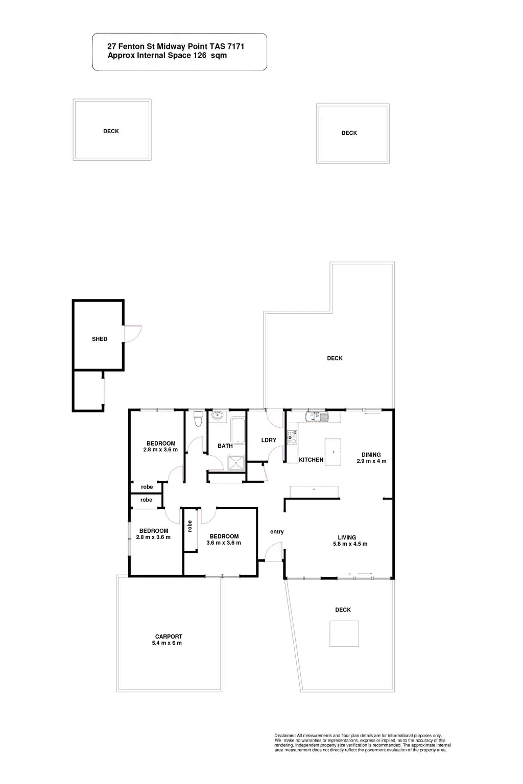 All three bedrooms are double sized with built in wardrobes, and the bathroom features a bath, separate shower and vanity with the toilet located separately.