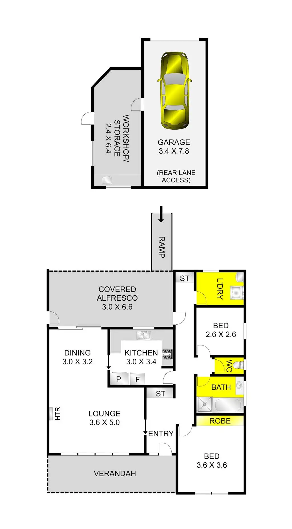 2 Bed • 1 Bath • 2 Car • 771m²