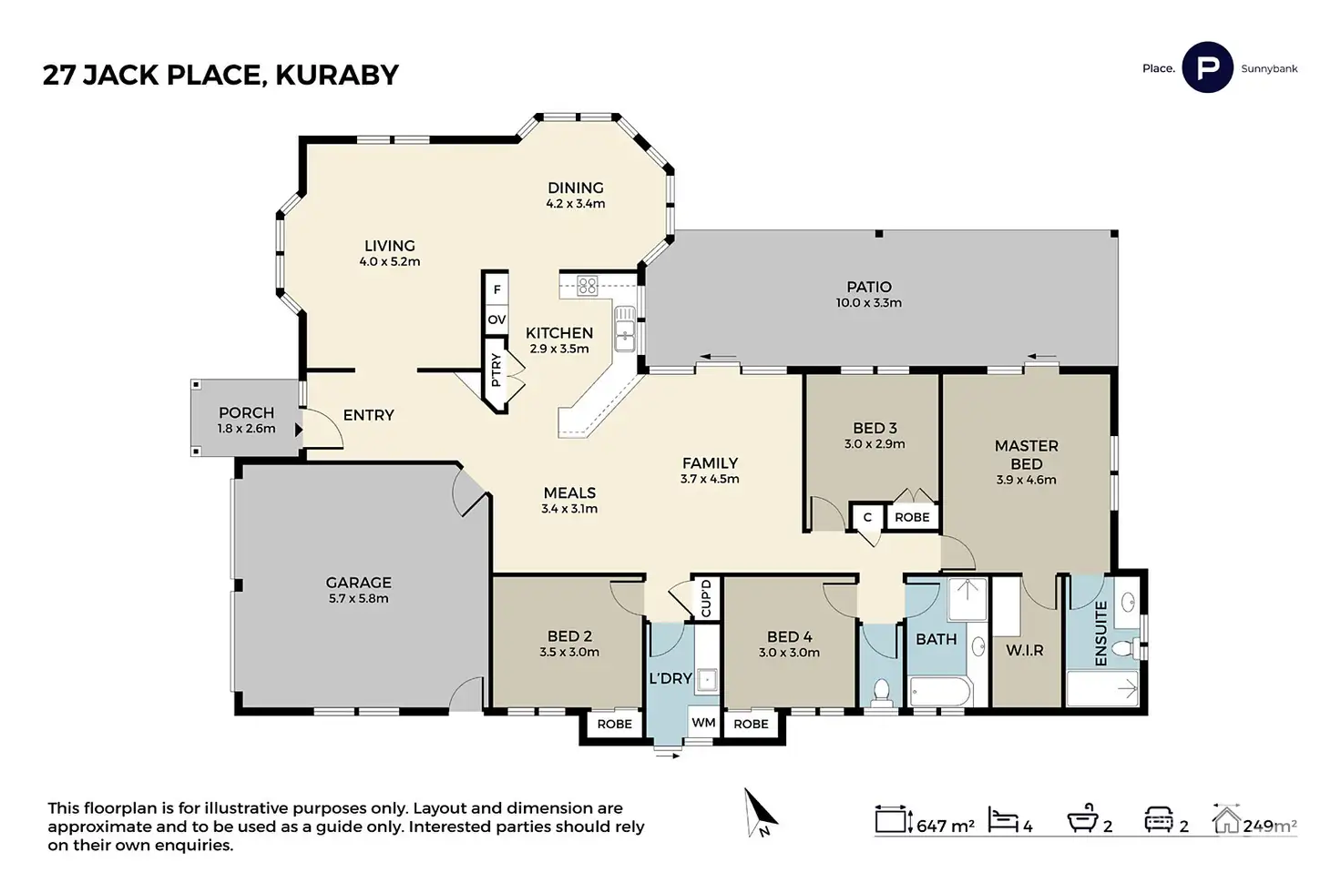 4 Bed • 2 Bath • 2 Car • 647m²