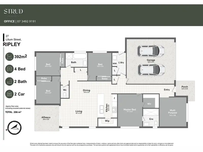 · Positioned on a spacious 392 m² block with approx. 206 m² of internal living