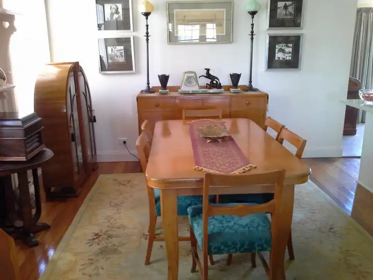 Detailed, original plaster ceilings and ornate cornicing feature in the entrance hallway, lounge room, dining room and master bedroom of the home, complemented by lounge and dining room fireplaces with original surrounds, paneled bedroom doors, an original granite glass window bathroom door, a quadruple-sized, paneled hall cupboard and beautiful, polished yellow-dark honey floorboards, throughout. As well, the entire hallway, master bedroom, second bedroom, lounge and dining rooms, all feature original Art Deco period light fittings. There are three good-sized bedrooms; the master being large, with a pleasant view of the pretty front yard rose garden, through its original sash windows. The second and third bedrooms, are currently being used as a guest bedroom and study.