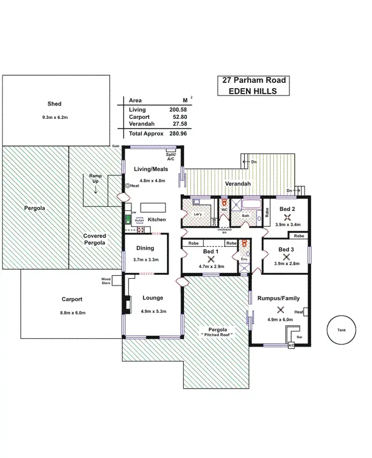 There is no shortage of outdoor areas to entertain, under the rear verandah, the pitched roof pergola at the front or even the pergola to the side. Solar hot water and 1.5kw solar panels offer some energy efficiencies.