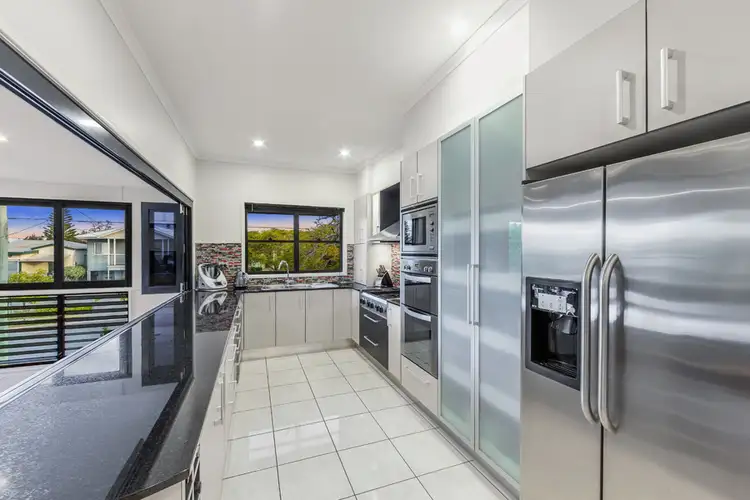 The impeccable presentation of this home is paramount with five bedrooms four with built in wardrobes spread out over two levels including the master suite with large walk in wardrobe, ensuite and private balcony. The open plan living area on the upper level incorporates the designer kitchen with stainless steel appliances including built in microwave and plumbed in fridge, granite benchtops and 900mm gas cooktop with bbq hotplate. The kitchen is equipped with a servery window opening out to the front upper deck with glimpses of the bay and of course captures the bay breeze. This area can be fully enclosed with aluminium louvres and retractable screens, the radiant bar heater adds warmth for the cooler months providing the perfect space to entertain all year round.