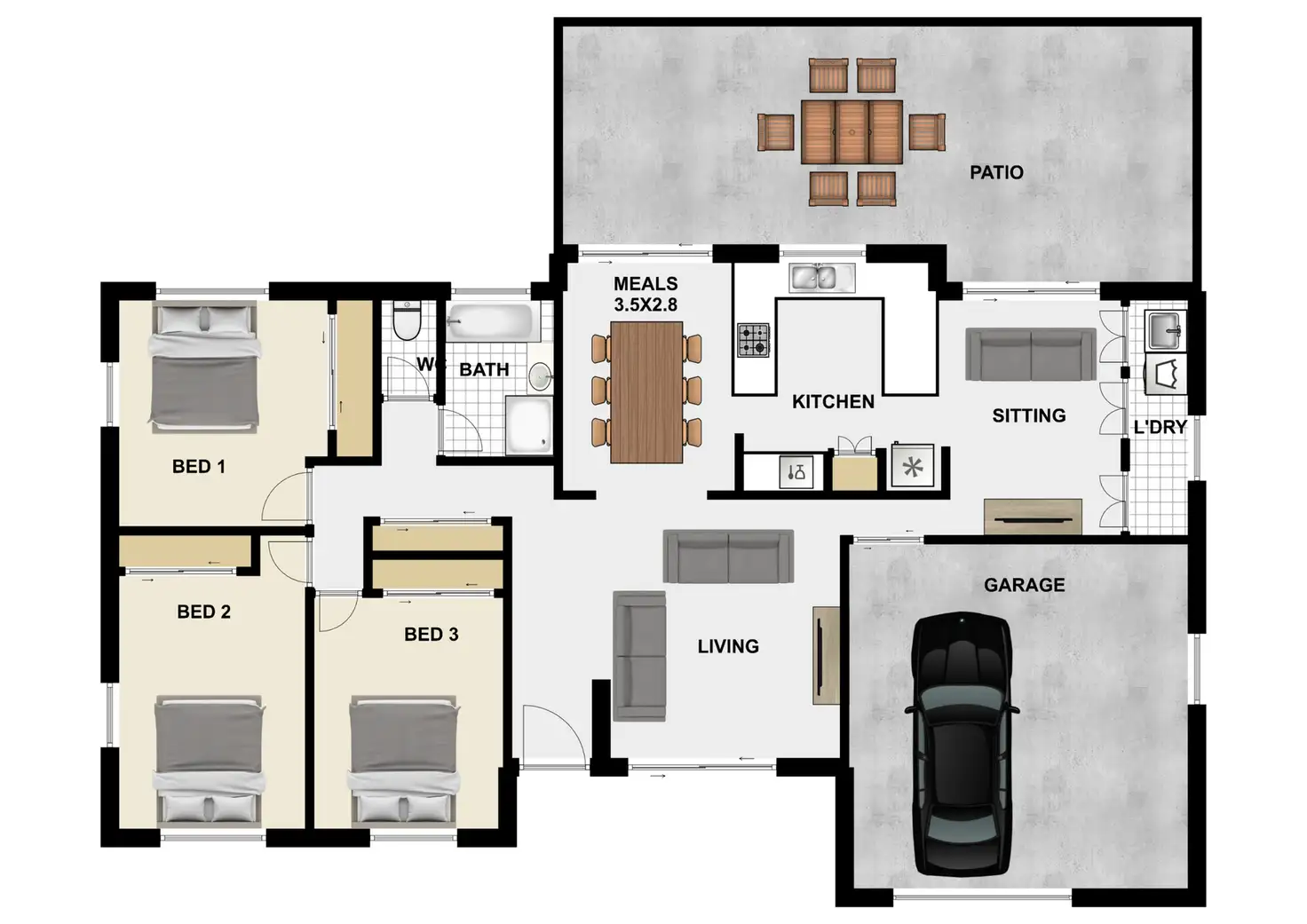 3 Bed • 1 Bath • 1 Car • 668m²