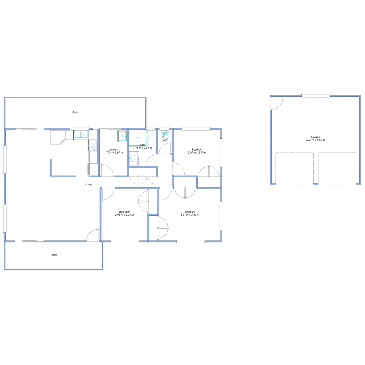 3 Bed • 1 Bath • 2 Car • 5915m²