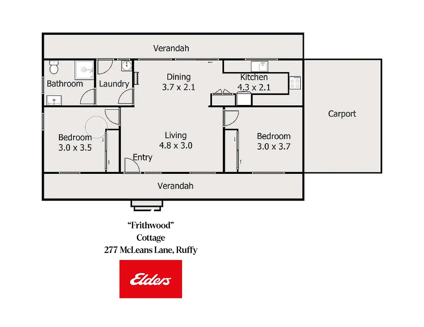 • Self-contained 2-bedroom cottage with galley kitchen and open-plan