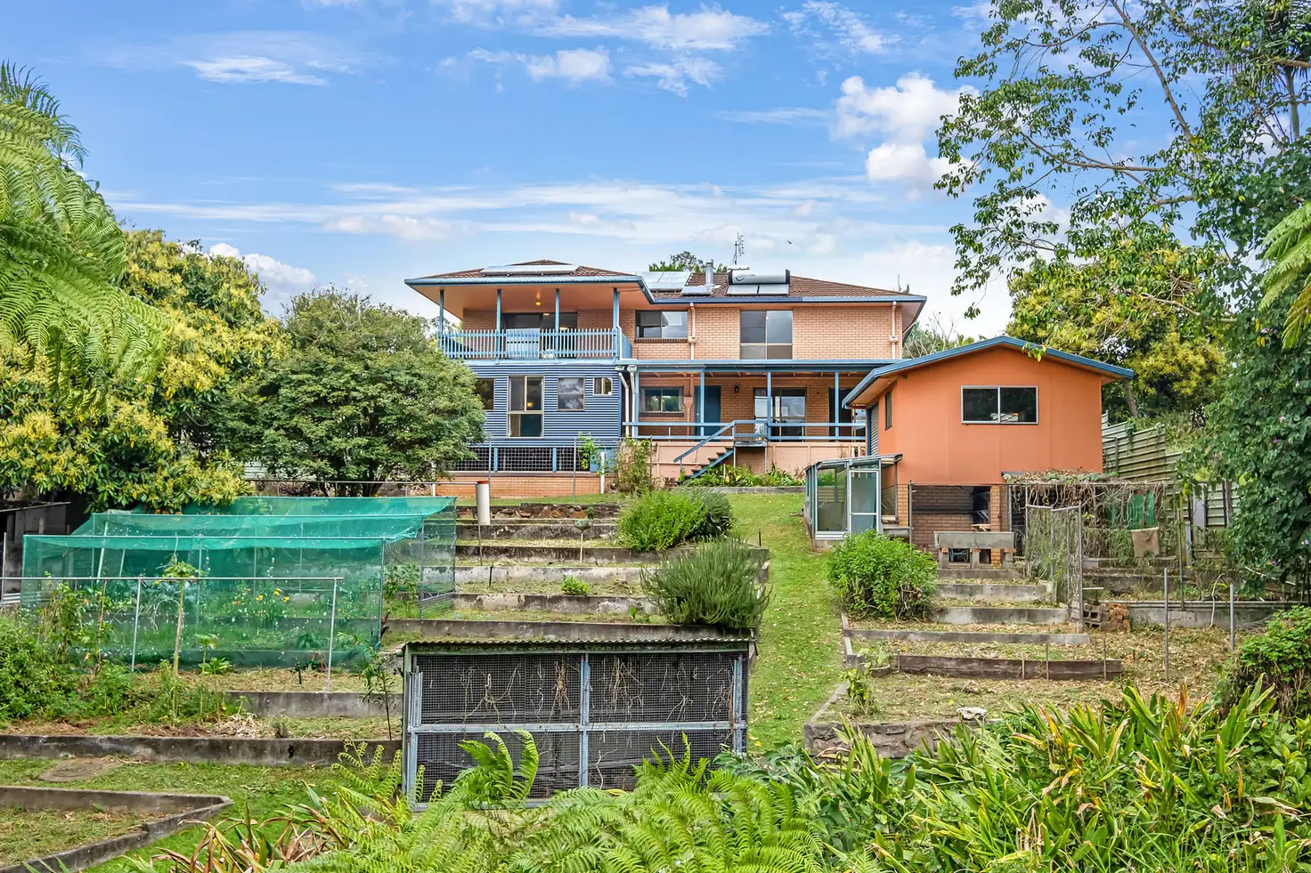 Infrastructure on the property includes multiple sheds, 4.7x6.3m workshop, 4 x water tanks supplying water in abundance, powered studio, cubby house, green houses and chook pens. There is a duck pond from a unique water source, terraced herb and vegetable gardens along with an abundance of fruit trees - supplying fresh produce from garden to table, and don't forget those free-range eggs! The garden has been designed and nurtured with permaculture principles in mind and will delight the green thumb of the family.