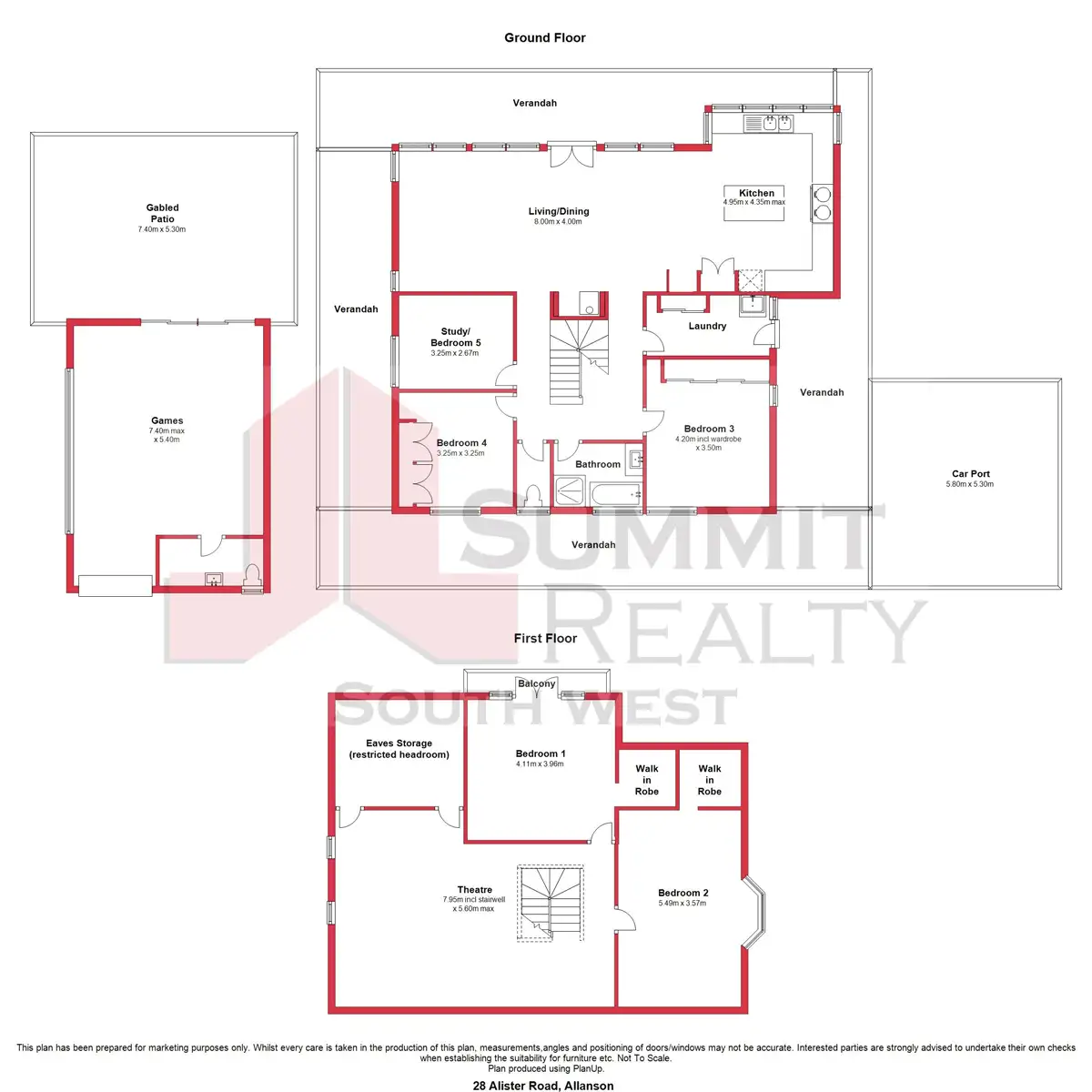- 5 bedrooms, 5th being a home office/study option. Bedrooms 2 & 3 upstairs feature walk in robes and one with its own balcony overlooking the garden. Remaining rooms are located on the ground floor away from the main living area.