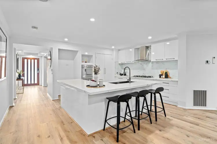 • Renovated gourmet kitchen with sleek stone benchtops, premium stainless-steel appliances, a dishwasher, and abundant storage, flowing effortlessly into the open-plan dining and family areas.