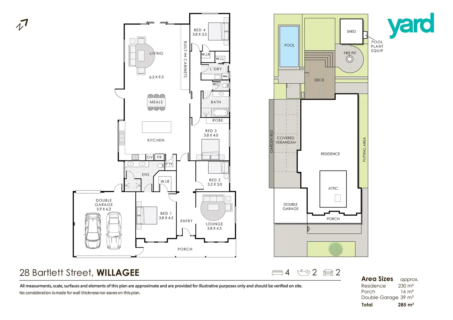 4 bedrooms, 2 bathrooms, 1pool, 2 cars
