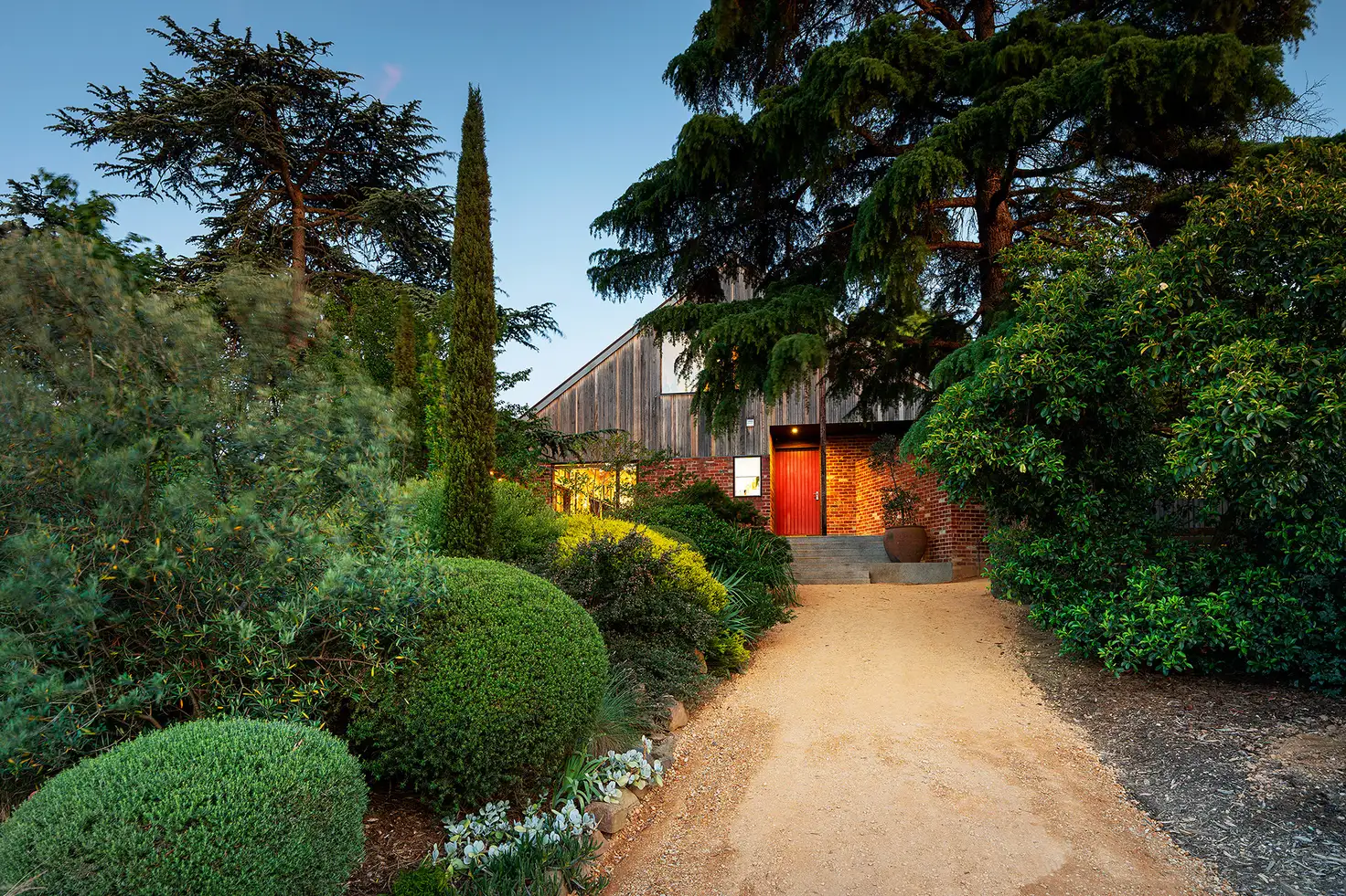 Privately set back from the street, behind a bespoke timber fence, surrounded by a landscaped garden, is the home and studio of renowned artist David Frazer. Perched at the top of the driveway, the brick and timber-clad home, with its red door, is a welcome beacon, a place to be inspired and to inspire.