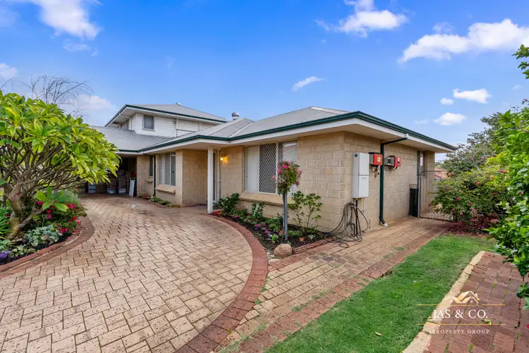The ground floor welcomes you with a formal lounge complete with ceiling fan and soft carpet underfoot, providing a relaxed retreat at the front of the home. The master suite features a walk-in robe and private ensuite with bathtub. Bedrooms 2 and 3 are generously sized with large built-in robes and are serviced by the second bathroom which includes a bath, shower, vanity, and a separate toilet.