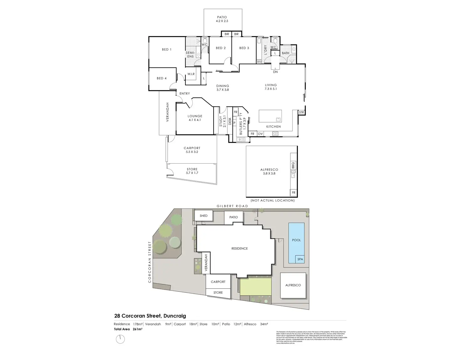- Alfresco with fully plumbed outdoor kitchen and bbq