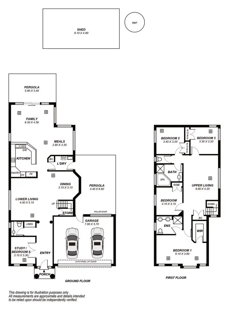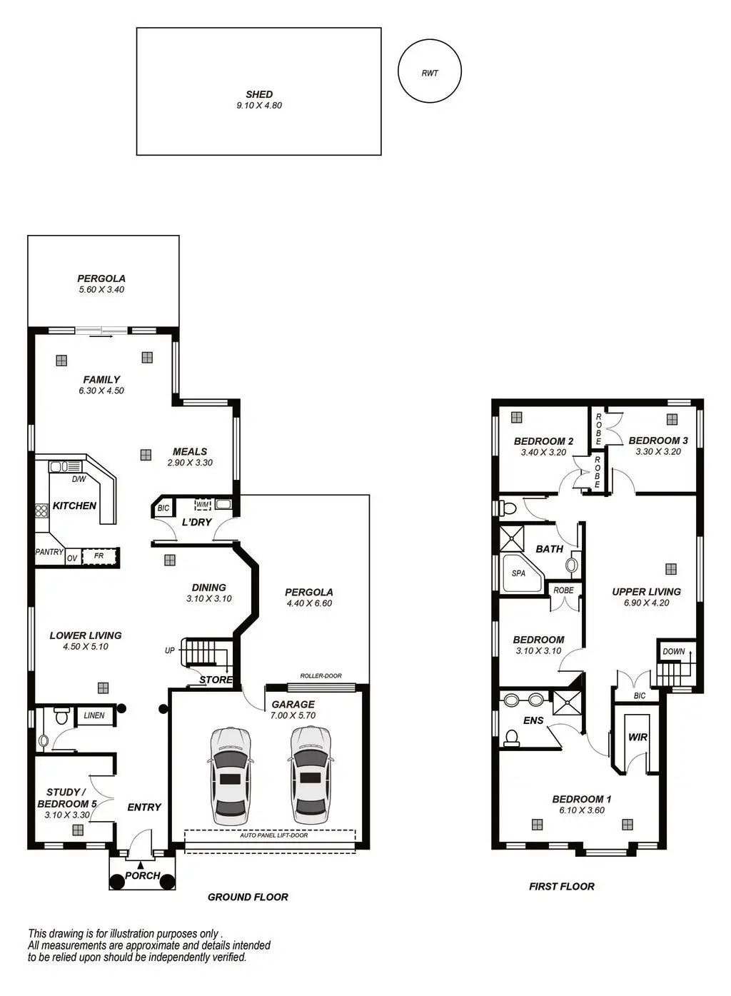 Protect the family cars from all the elements inside the double garage with automatic single panel lift door that allows through access to the backyard & shed.