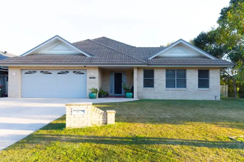 Recently renovated, this 4 bedroom home hits the market with a brand new kitchen, carpet and internal paint out. Located in the prestigious Myall Quays Estate, the grounds include a fabulous, solar heated, mineral fibreglass pool, extending onto a paved BBQ area and lush grass, perfect for entertaining and year long swimming. The large Queenslander room, with all weather Spanline blinds, also opens onto the side yard adding to the outdoor entertaining areas. With gated pathways up either side of the house all outdoor areas are accessible. The gardens are thriving and include a magical display of Clivias as well as an abundance of healthy plants. Open the front door to find a spacious entry with a generous theatre room to the right, bi-fold doors adding privacy when required. On the left is internal access to the garage which includes an extra storage cupboard built around the hot water tank, a handyman's work nook and a third toilet. The garage also has pull down stairs to the internal roof for access and extra storage. The brand new kitchen is the heart of the home with stunning 40 ml ceaserstone waterfall bench tops, soft close under bench cupboards, and a matching built in buffet balancing the room. Open plan living includes a dining area, casual family room and a second living area. An enclosed verandah off the dining room offers additional living spaces and can be accessed from the third bedroom. Up the hallway the master bedroom is huge and includes his and hers seperate built in wardrobes plus ensuite and sliding door access to the beautiful outdoor surrounds. Three more bedrooms, two with large built in wardrobes, the other with built in storage / desk, a bathroom, linen cupboard and functional laundry complete with hanging racks, baskets and huge storage finish the internals. Other extras include induction cooking, USB power points, fans in most rooms and ducted air conditioning.The Myall Quays Estate offers peaceful parkland and picnic areas, waterways perfect for fishing and kayaking and this beautiful home is an easy 5 minute stroll to the shopping centre which includes Coles, bakery, Post Office, newsagency, Dr's surgery, chemist and boutique shopping. Inspections are a must for this immaculate home.Agent declares an interest.