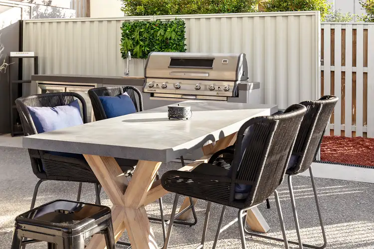 - Indoor-outdoor under-roofline, private alfresco via stacker doors with additional newly built extension patio for prolonged family visits