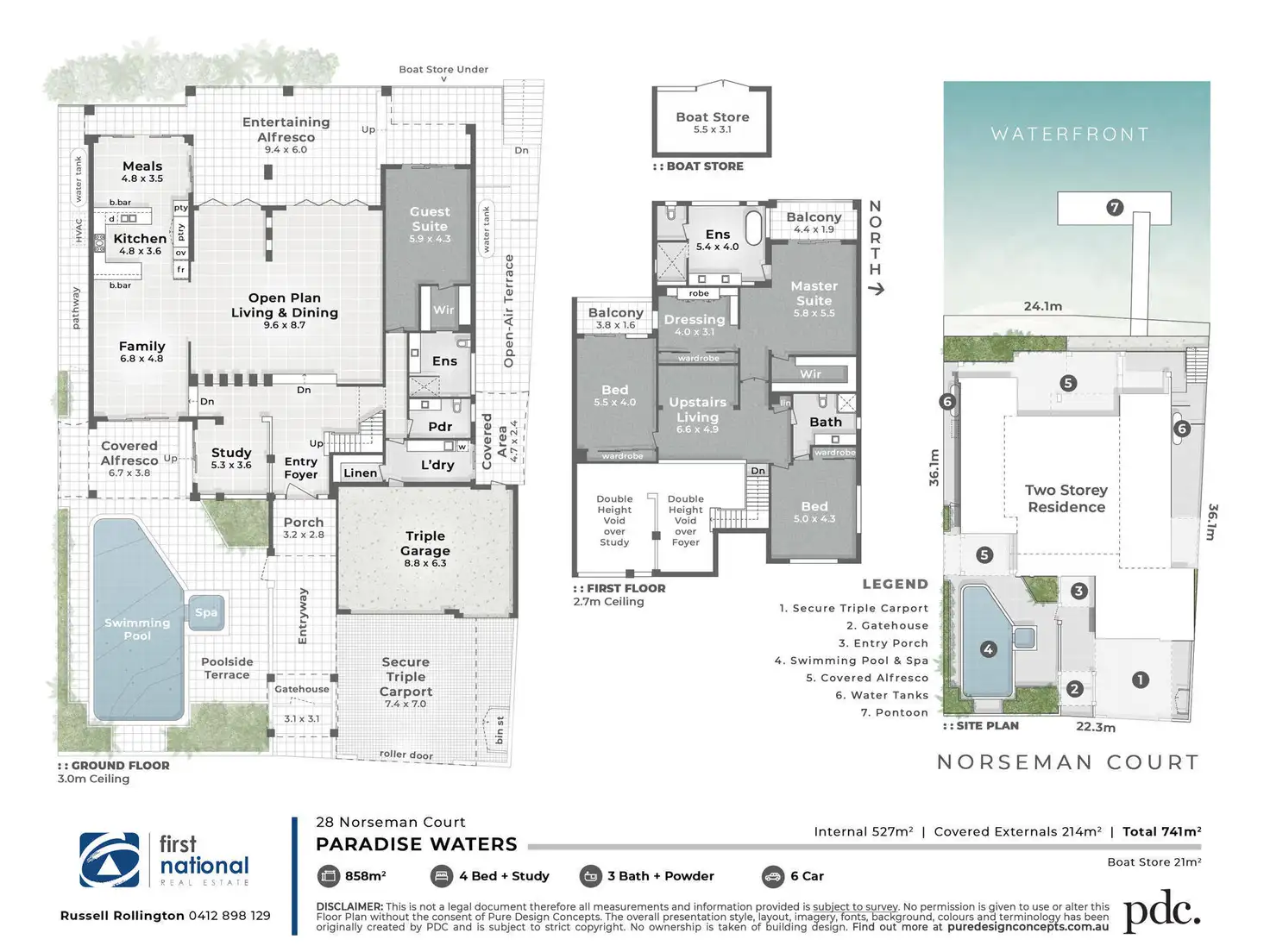 As you enter this superb residence you have on offer an amazing versatile floor plan with large open plan spaces capturing high ceilings and glass voids enhanced by natural light cascading throughout this designer home. A feature timber and stainless steel staircase enhance the spectacular entrance foyer, porcelain tiles throughout the lounge, family, living and dining rooms allow a seamless easy living lifestyle with all rooms enjoying fantastic water views. Attention to detail this residence was created for entertaining, enjoy the expansive gourmet kitchen with natural stone and timber finishes with integrated Miele appliances, the executive office with high ceilings bathed in sunlight flows through to your private and secluded pool, the true indoor/outdoor entertainer with amazing waterside verandas and under cover sundecks this designer home is the ultimate in easy care luxury waterfront living at its very best.