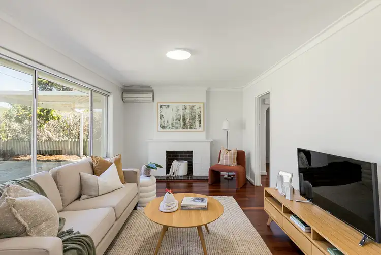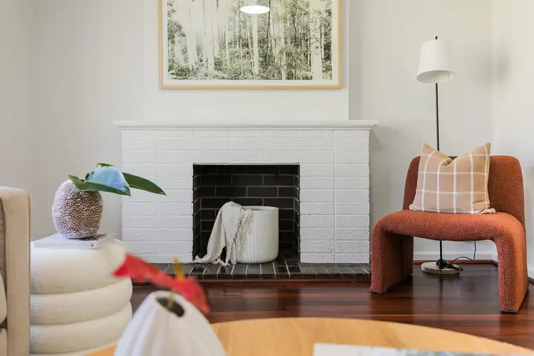 A large lawn sits to the front of the home with a soaring tree providing an inviting contrast against the crisp white exterior, with a driveway allowing easy access to the covered carport and a variety of parking, while on the opposite side you have unrestricted gated access to the rear yard. A stepped entry guides you inside the home via the front security door, with the solid hardwood flooring and high ceilings showcasing the foyer to its best potential and offering a glimpse of the beauty within. A formal lounge is placed to the left, again with that striking flooring, sweeping natural light and a reverse cycle air conditioning unit for added comfort, with a brick fireplace a wonderful and existing feature of the original 1970's design.