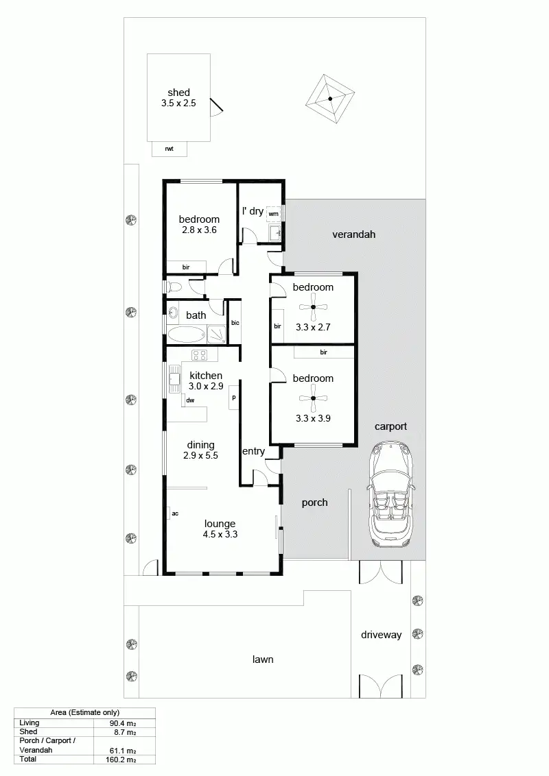 3 Bed • 1 Bath • 2 Car • 315m²