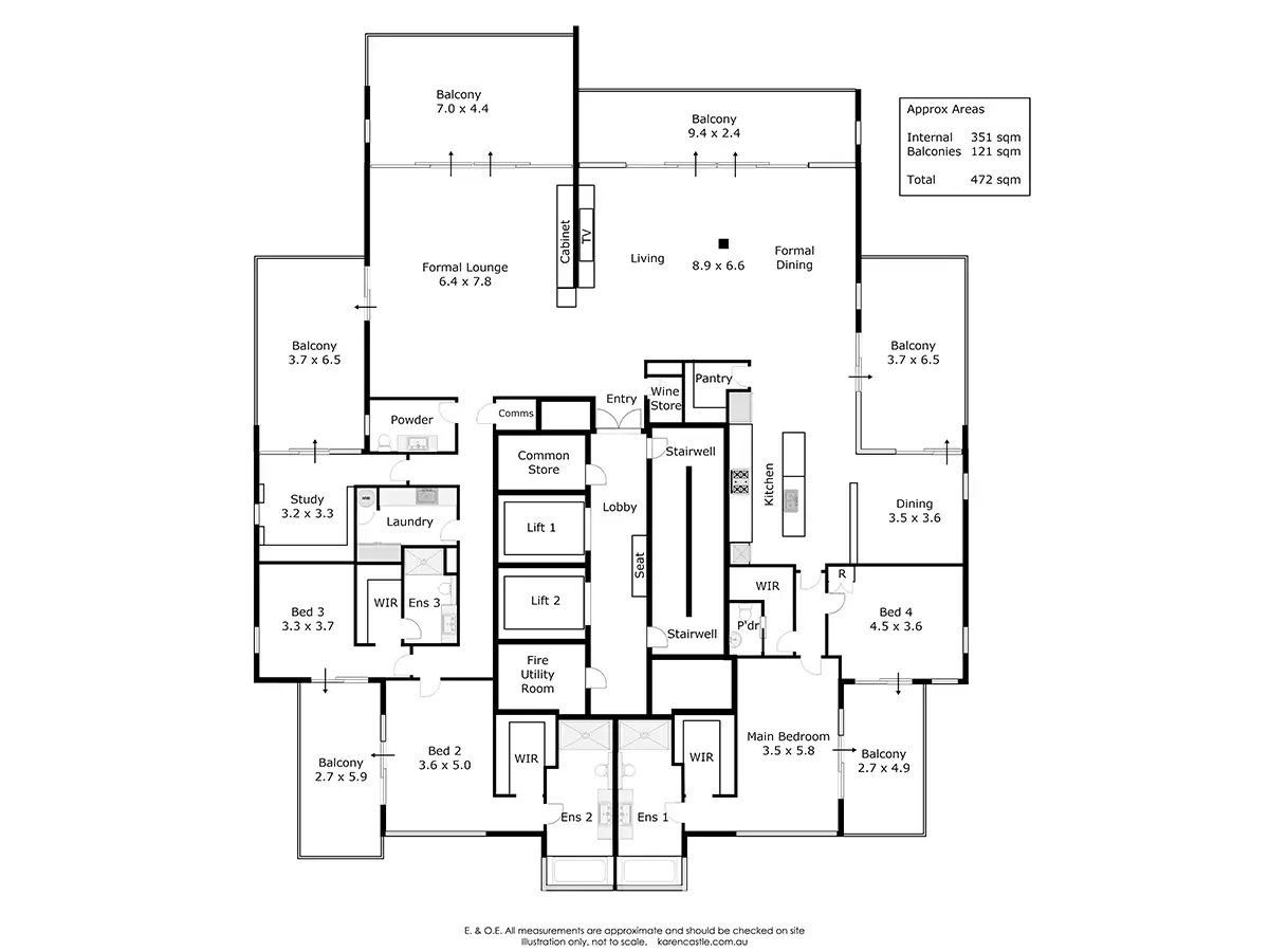 - Free flowing open-plan design (351sqm internally) plus 6 balconies
