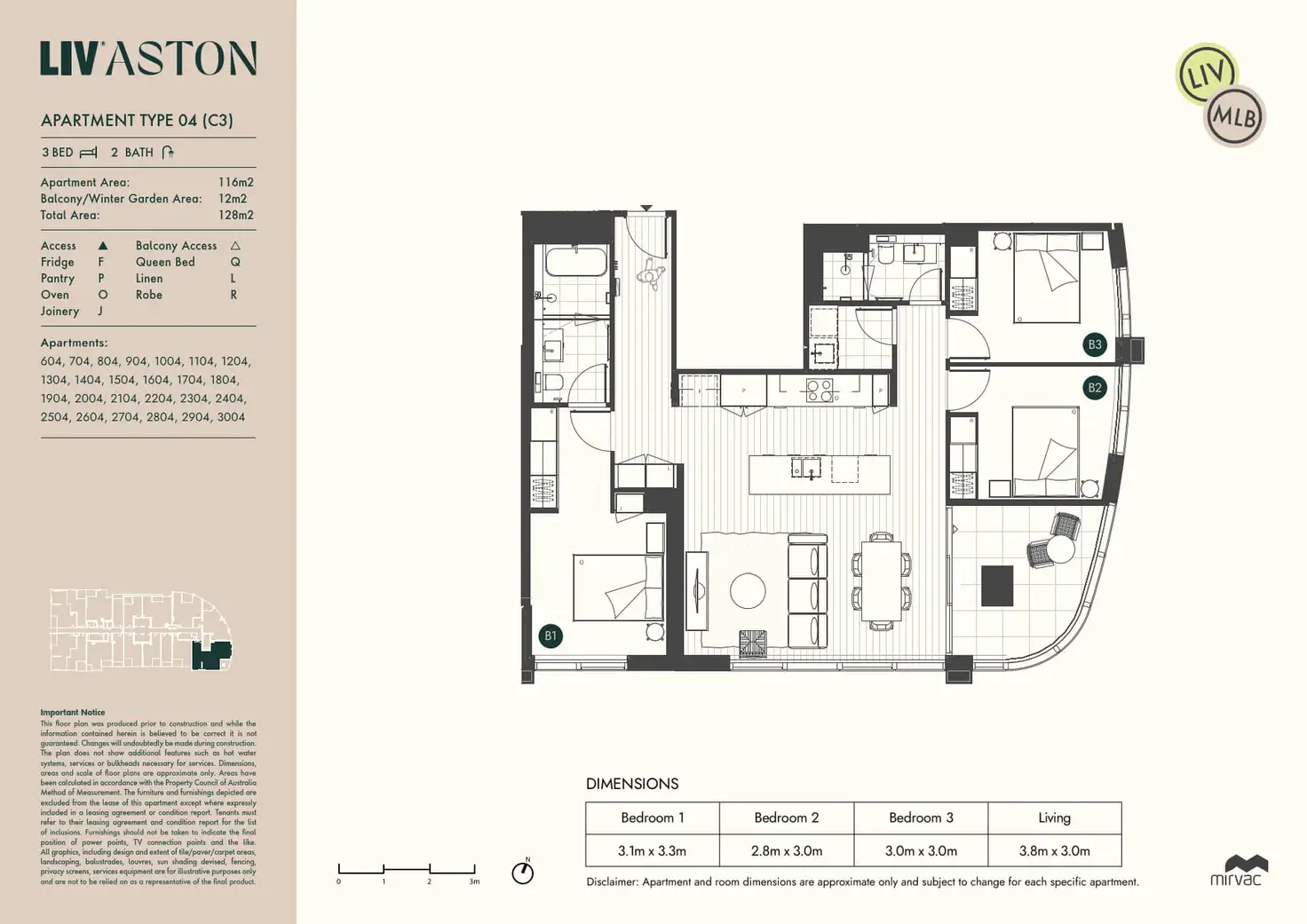 Experience resort-style city living with house-like scale and comfort. This is one of the most generously scaled furnished apartments in LIV Aston, with an oversized living space incorporating an entertainer's kitchen with island, outdoor space and plenty of storage. All three bedrooms are queen sized, with an ensuite bath in the master. It's an ideal platform for sophisticated family living, with three levels of exceptional resort-style amenity just an elevator ride away.