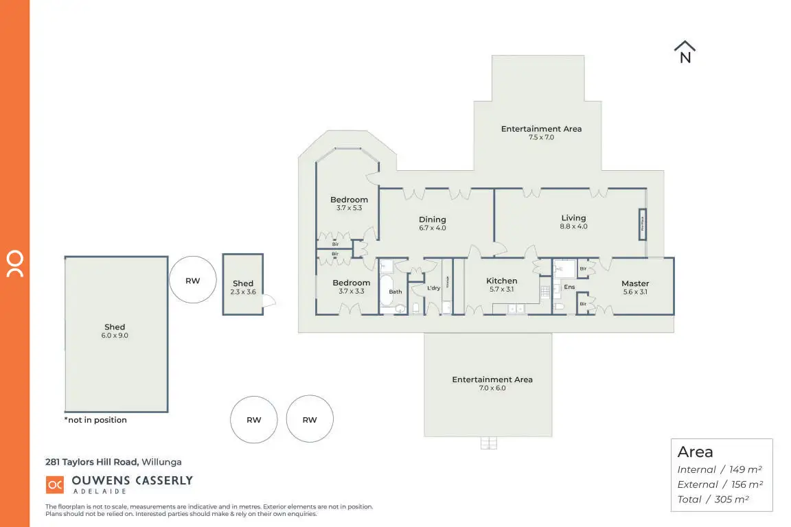 -7m x 5m paved outdoor entertaining area to the East with shade cloth cover