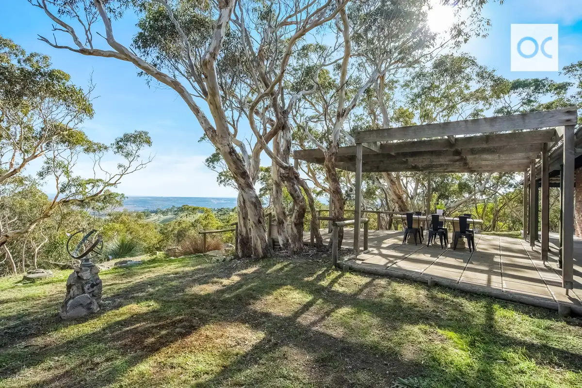 Set on the ocean side of The Range, this property enjoys spectacular views over a tapestry of the local bushland, farmland, vineyards, twinkling lights of townships and sea views to Gulf Saint Vincent. Just 2.9km or 5 mins to Willunga, welcome to Country Life.