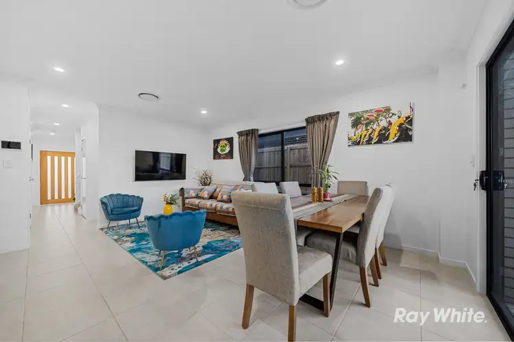 This modern family home at 285 Killara Boulevard, Logan Reserve is less than four years old and has been thoughtfully designed to deliver contemporary living with comfort and style. You are instantly welcomed with a beautifully paved walkway which enhances the home's character, guiding you gracefully to the main entrance with style and ease. Inside, you will find high ceilings and ducted air conditioning throughout, the front lounge area provides a welcoming retreat upon entry. Downstairs also features a convenient powder room and a cleverly positioned cupboard beneath the stairs, maximising storage and functionality.