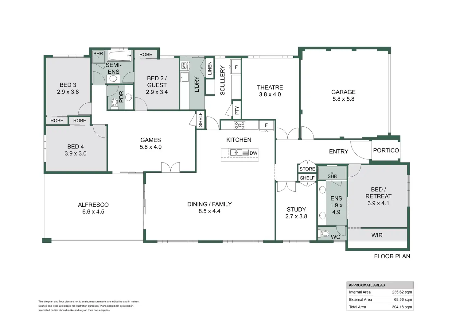 The additional bedrooms are generously proportioned, each equipped with double sliding robes to ensure ample storage. A dedicated study provides a quiet workspace, while the separate theatre room and a versatile children's activity/games area offer endless possibilities for family enjoyment.