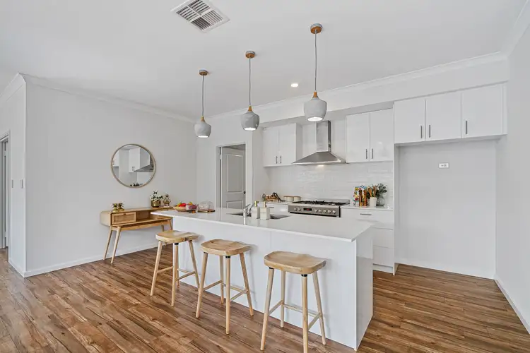 Bathed in natural light, the expansive open-plan living zone exudes warmth and elegance, effortlessly flowing to a generous outdoor retreat. At its heart, the designer kitchen is a culinary dream, featuring a sleek breakfast bar, premium stainless steel appliances, abundant storage, and a fully appointed walk-in scullery-perfect for seamless meal preparation and entertaining.