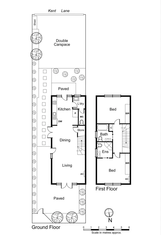 The great size kitchen with stainless steel appliances flows out to the impressively proportioned rear courtyard with a remote roller door for easy access for two cars via Kent Lane. Upstairs, two large fitted bedrooms include the main with modern en suite and main bathroom with shower and bath facilities. Brand new bamboo flooring downstairs and new carpet upstairs, LED lighting, new external paving, reverse-cycle air conditioning units, laundry, and a freshly painted interior contribute to the home's exceptional success in this coveted lifestyle address.
