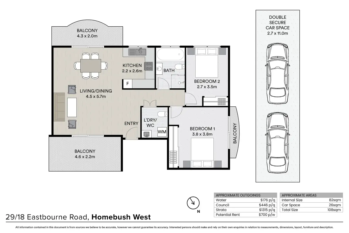 2 Bed • 1 Bath • 2 Car • 108m²