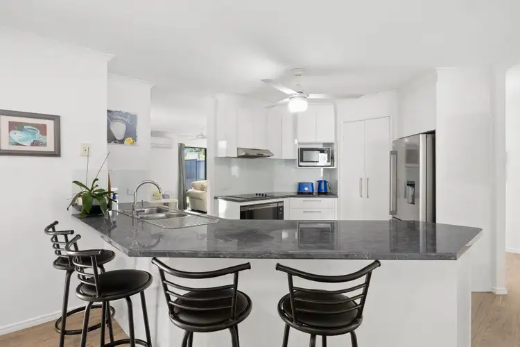 Seamlessly blending indoor and outdoor living, this property provides the perfect backdrop for entertaining and embracing the Sunshine Coast lifestyle. Featuring four bedrooms, the home ensures privacy and practicality. A spacious open-plan living area integrates seamlessly with the central kitchen, complimented by a separate lounge for added versatility.