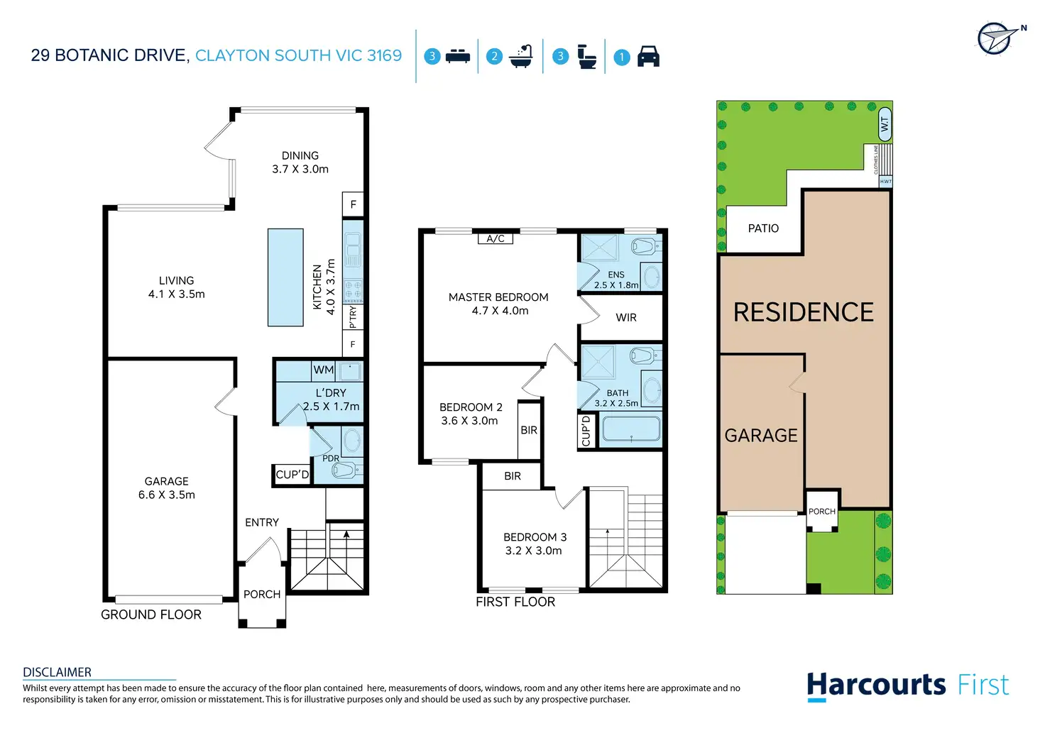 Contributing downstairs appeal, you’ll find a powder room and laundry, with the three robed bedrooms peacefully positioned on the upper level and including a master bedroom with walk-in-robe and sparkling ensuite, accompanied by a family bathroom with toilet.