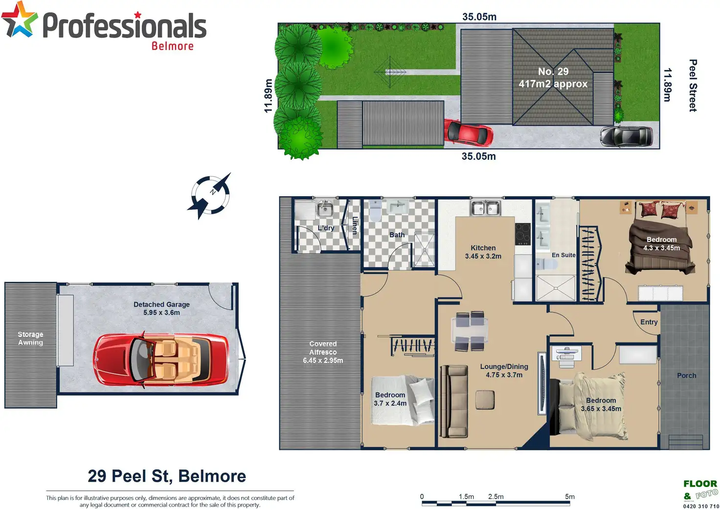 3 Bed • 2 Bath • 2 Car • 417m²