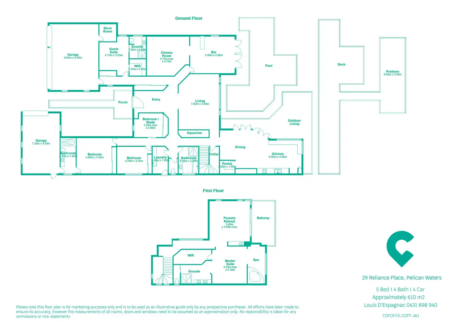The grand bar and games room, fully fitted out media room, living room with built-in aquarium, sublime open-plan indoor living spaces, five bedrooms plus a parents retreat with balcony, stunning kitchen, Butler's pantry, zoned alarm security system, all finished to the most precise standards, complete this masterpiece.