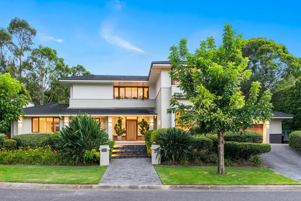 Unquestionably one of the finest residences lining the golf course in this exclusive residential enclave, this architect designed contemporary masterwork has been remastered to provide a residence of the absolute highest calibre. Conceived for gala entertaining with sweeping living spaces flowing to customised entertainers' terraces with 5-star resort-like luxuries, it rests on an exquisitely landscaped 2,030sqm parcel with near level lawns and sun-soaked north rear aspect. Directly adjoining the golf course with picturesque vistas embracing the 13th green and fairway, this prestigious lifestyle retreat is wonderfully secluded yet only 30 minutes from Sydney's CBD.