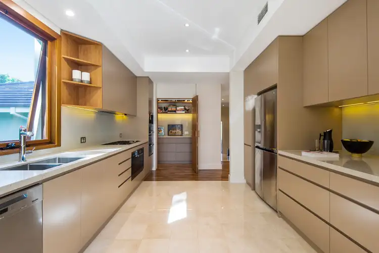 Recently renovated with top-of-the-range Miele appliances, the gourmet Corian kitchen includes gas cooktops, integrated coffee machine, and door in door fridge, stainless steel dishwasher and butler's pantry.
