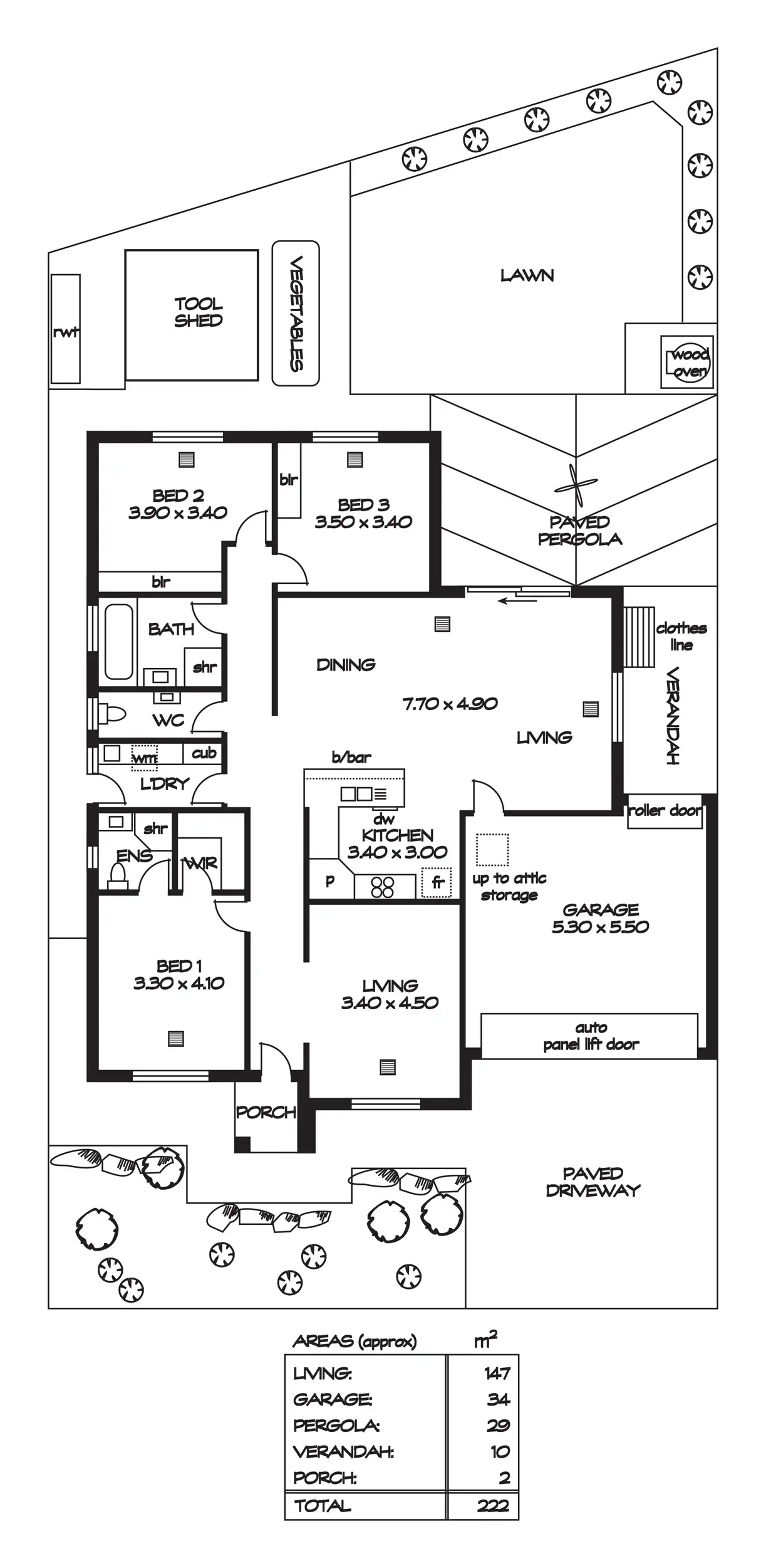 Step outside and fire up the wood oven while you entertain family and friends under a paved, opaque covered, gabled pergola. A ceiling fan will moderate the temperature as you relax in this welcoming outdoor space. There is plenty of space for the kids to play on a generous lawned area, while a tool shed, rain water tank and veggie garden complete a great outdoor space.