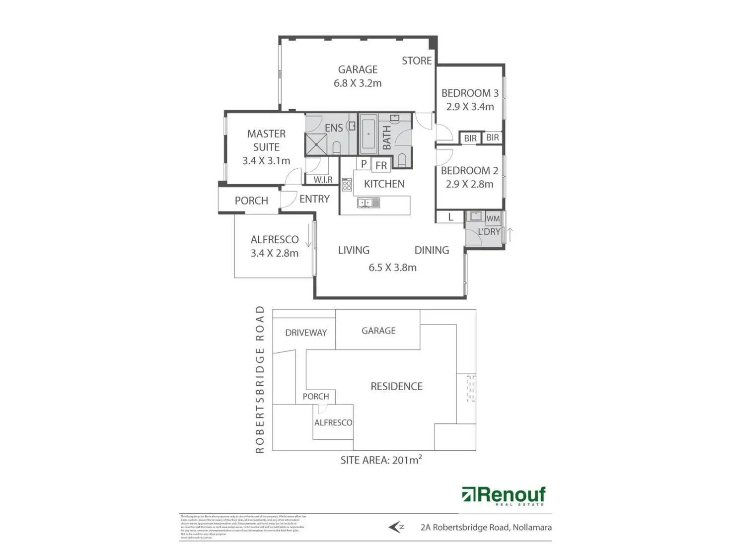 The master bedroom, located at the front of the house, has an ensuite bathroom and walk-in robe. The other 2 bedrooms, each with built-in robes, are located at the back of the home, where they share a bathroom.