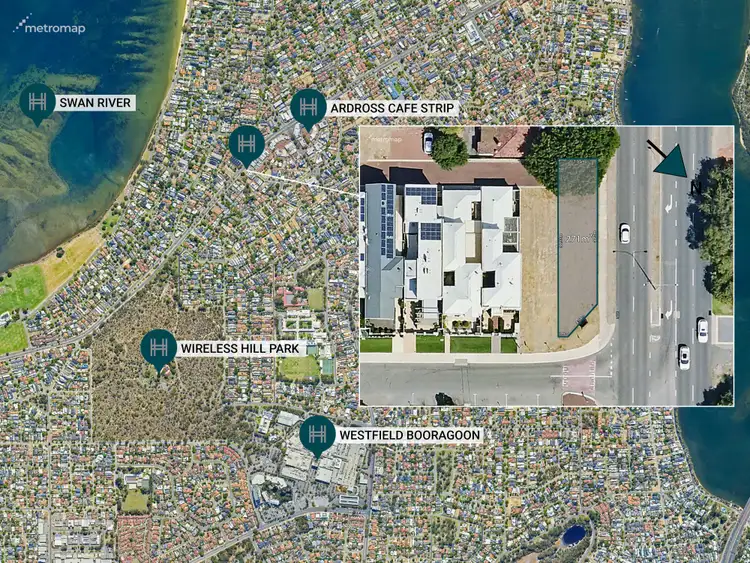 Nearby amenities enhance the property's appeal, including the 2 Stroke Coffee Bar (90m), The Quarter Acre Hotel (130m), il Ciao Applecross (200m), Bad Apples Bar (340m), Scutti Fresh Markets (440m), Lucky Bay (500m), and the Swan River (540m). Educational institutions such as Ardross Primary School and Saint Benedict's School & Church are within 800m, while Applecross Senior High School is just 970m away. Recreational areas like Tompkins Park (1.0km) and Wireless Hill Reserve (1.2km), along with the major shopping destination Westfield Booragoon (1.6km), are also nearby. Canning Bridge Station is just 2.7km away, ensuring excellent connectivity.