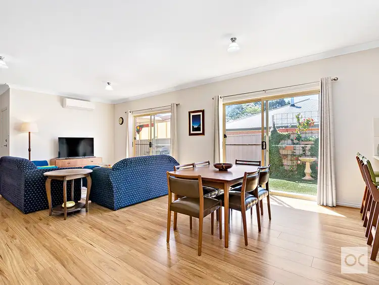-North facing open plan living/dining kitchen with dual sets of glass sliding doors allowing the winter sun to stream in, plus split system a/c