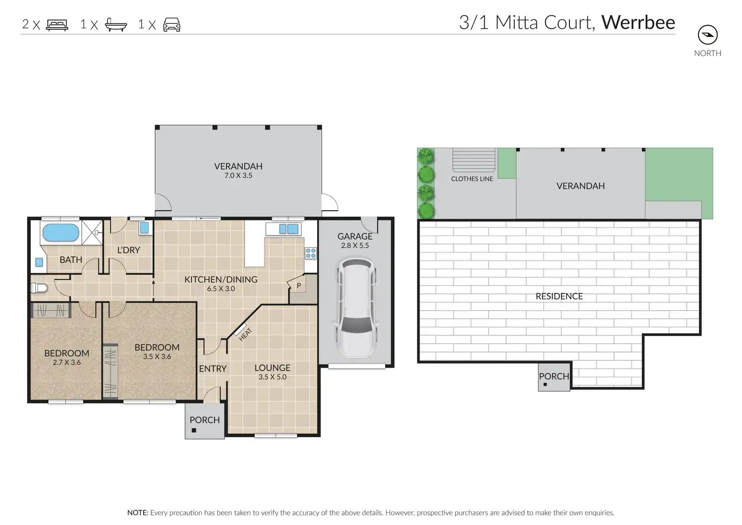 2 Bed • 1 Bath • 1 Car