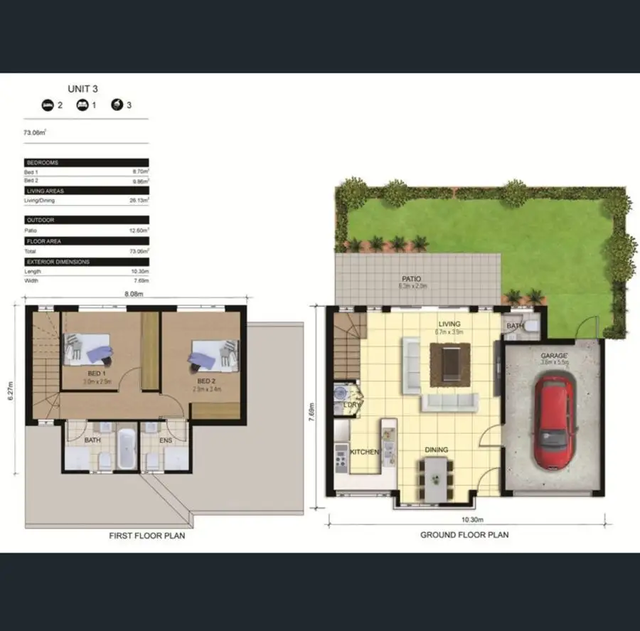 2 Bed • 3 Bath • 1 Car