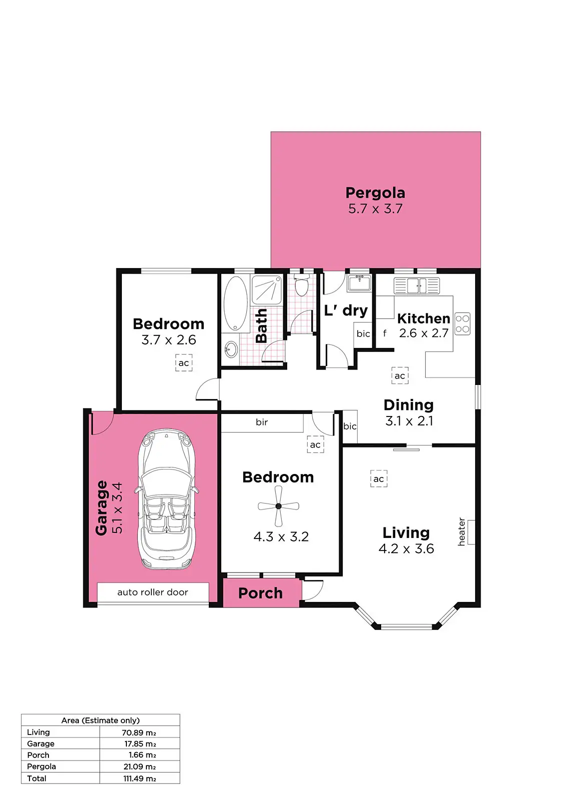 2 Bed • 1 Bath • 1 Car