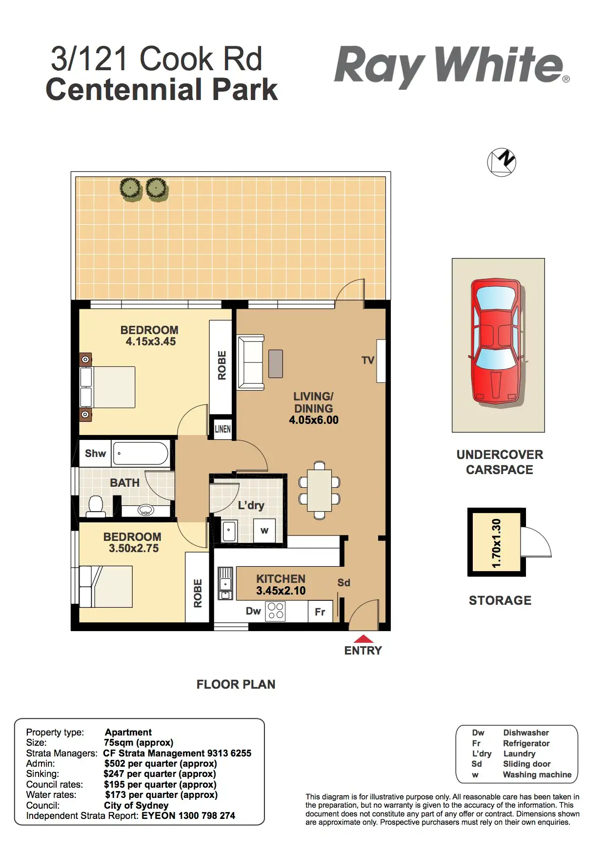 “Light & bright, spacious 75sqm with car parking”