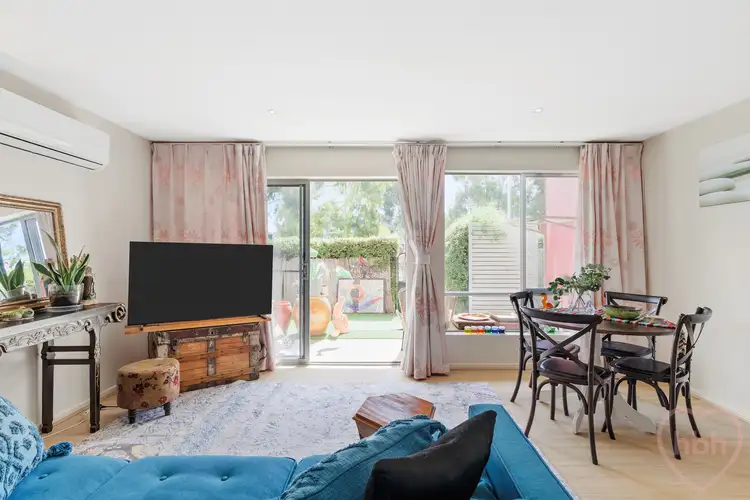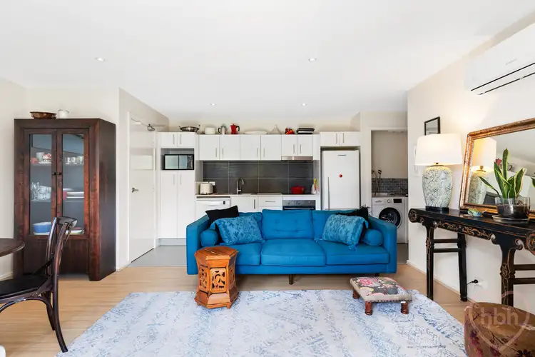 The courtyard garden is easy-care, laid with concrete and synthetic grass and edged with mature hedges for that sense of enclosure. Part sheltered and open, it is the perfect niche for hanging with friends or for quiet repose…with that enviable ease of movement from inside to out. A gate gifts access to Flemington Road, so you can stroll to Woolies for essentials, great coffee or a relaxed meal at your favourite local.