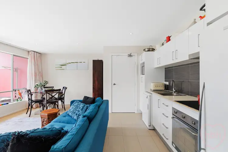 We love the playful form that combines corrugated silver cladding, raw concrete punctuated with boxed balconies in pops of yellow and pink. To the rear, a laneway provides access to the single garage with auto-door, and there is a formal entryway and foyer, with a secure intercom.