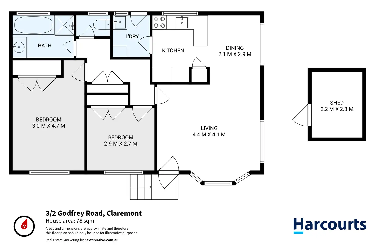 2 Bed • 1 Bath • 1 Car • 310m²